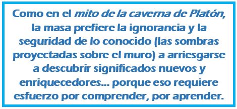 Leer implica un esfuerzo de atención y tiempo, sobre todo si el contenido es denso. Como hoy día lo importante es que la gente se quede con dos o tres mensajes (porque si son más ya nos perdemos), hay que ser muy conciso y claro. La concisión y claridad no son malas per se, el problema es que se aplican para bajar el nivel con la excusa de que la mayoría semi-iletrada capte el concepto. Fruto de la progresiva “asnalización” del personal…