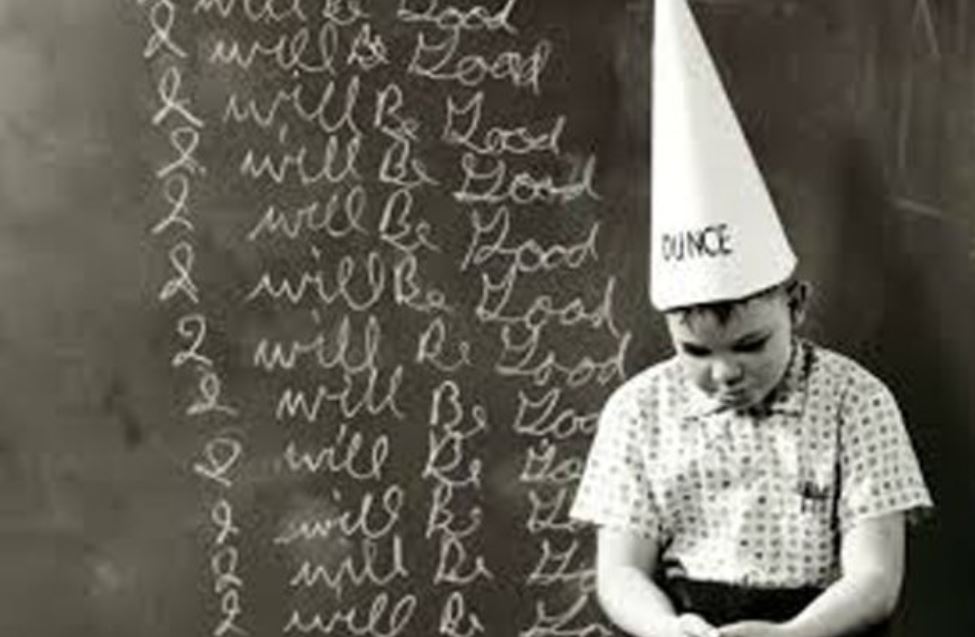 Antaño nuestros menores que se comportaban díscolamente en la escuela eran señalados por el resto de alumnos cuando el maestro los retiraba a un extremo del aula, colocado sobre su cabeza un cucurucho con grandes orejas de asno, de modo que sufría la vergüenza y el ridículo de verse así expuesto ante sus compañeros.